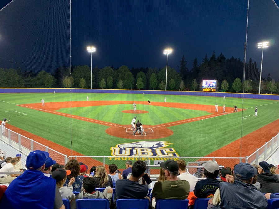August 14 2019, Vancouver- After a historic night at the Nat Bailey Stadium, complete a dominant 8-2 no-hit win, the UBC Thunderbirds returned to their true home at the Tourmaline West Stadium on their beautiful Point Grey campus. The crowd, although not near the 3300 of Tuesday night, was still rambunctious and packed the much smaller confines of the UBC Stadium.